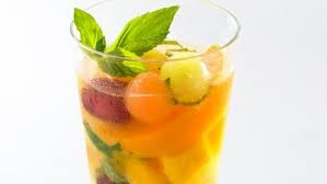 - Retirer du sirop le bâton de cannelle + les clous de girofle…. Arroser les fruits de ce sirop. Remplir les verres aux 3/4 avec le jus de pomme ……………… Compléter les verres avec l’eau pétillante.