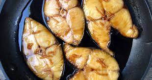 Dans un bol, fouetter 2 c à s d’eau + saké + sucre + sauce soja + gingembre ………. Verser sur le poisson.