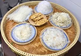 ** Dans la casserole de lait, ajouter le vermicelle égoutté. Mélanger 3 mn …… Ajouter la moitié des germes de soja + le cou-chai émincé ( ou la ciboulette) (+ les crevettes). Réchauffer 2 mn.