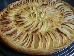 - Sortir le moule du frigo. Y étaler la crème d’amande …………. Recouvrir de lamelles de pommes en les faisant se chevaucher un peu ……