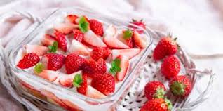 - Dans un plat ou 4 grands verres, coupes ou bols, disposez en couches successives alternées le Brocciu … puis les fraises … Brocciu … fraises .. etc … jusqu’à épuisement des ingrédients.