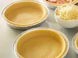 Etaler la pâte brisée devant vous. Retourner 1 des moules à tartelettes. Le poser dans un coin de la pâte et découper tout autour à 1 bon cm du bord…. Découper ainsi 4 disques ……… Les disposer dans les moules….