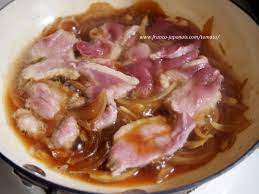 - Cuisson: – Dans une cocotte, chauffer l’huile. Y faire dorer le canard …. Ajouter oignon + champignons et mélanger 5 mn ………. Verser la marinade et porter à ébullition en remuant ……… Baisser aussitôt le feu. Couvrir. Laisser tout doucement mijoter 1 h 30 mn.