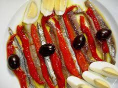 - Dans un plat, disposez, bien serrés les uns contre les autres, poivrons et anchois en les intercalant.
