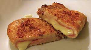 **Passer chaque tranche de viande farcie 1) dans la farine, 2) dans les oeufs battus et 3) dans la chapelure en appuyant pour qu’elle adhère bien…………………….. puis les déposer dans le beurre très chaud. Laisser cuire de 2 à 4 mn de chaque côté selon que vous préférez la viande + ou – saignante.