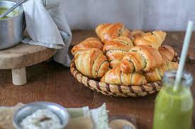 –** Si vous faites votre pâte à croissants, lui incorporer la crème d’ail avant de l’étaler et de les façonner.