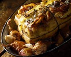 Descendre la grille du four.. Baisser à th 7 (210°). Enfourner à nouveau pour 40 mn en arrosant le rôti plusieurs fois avec le jus rendu ( rajouter 1/2 verre d’eau= 10 cl, 5 mn avant la fin de cuisson).