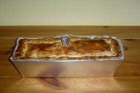 - Graisser une terrine ou un moule à cake. Y disposer les 3/4 de la pâte en la laissant un peu dépasser.