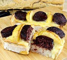 Toaster le pain …. Le tartiner de pâte au boudin …. Décorer d’1 ou 2 lamelles de pomme ou poire.