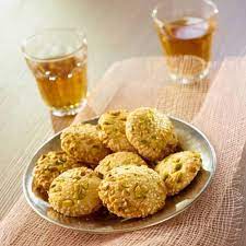 ** Sur une assiette, mélanger le reste de sésame ( 100 g) + les pistaches hachées………… Y poser les petites galettes en appuyant un peu pour les faire adhérer, des 2 côtés…….. Au fur et à mesure, déposer les galettes un peu espacées sur la plaque du four.