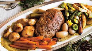 - Pour servir: – Pendant que vous découpez la viande et après avoir sorti les légumes sur un plat de service, faire réduire le jus de cuisson en le portant qq mn ) ébullition.