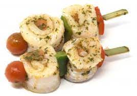 ** Dans un verre, fouetter 1 c à c de jus de citron + 2 c à s d’huile d’olive… En arroser les brochettes.
