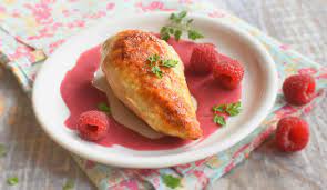 - Pour servir: Poser 1 blanc de poulet dans chaque assiette de service…. L’entourer de fruits rouges…….. Arroser chaque blanc de poulet d’1 filet de vinaigre au miel ……. Parsemer de ciselures de menthe.