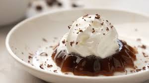 (accompagnement: 1 bombe de Chantilly ou bien fouettez 15 cl de crème fleurette + 1 c à s de sucre glace + 1 sachet de sucre vanillé —- ou bien des boules de glace vanille et un peu de crème fraîche liquide très froide)