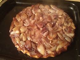 - La tarte encore chaude, la retourner d’un coup sec pour la faire glisser sur un plat.