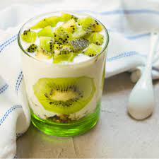 ** Peler 1 kiwi ou 2. Le ou les couper en rondelles fines… En tapisser le pourtour de 6 verres ou bols…… Couler la préparation par dessus.