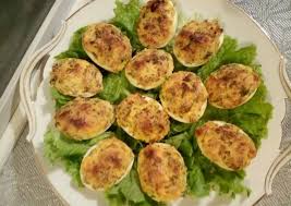 Disposer les 1/2 oeufs farcis, côte à côte dans le plat beurré.