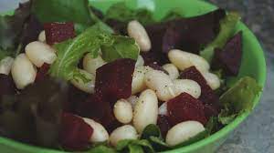 Dans un saladier, mélanger haricots + mâche + betterave.
