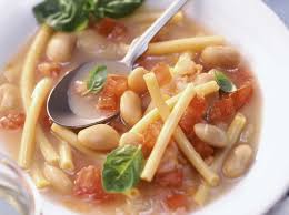 - Dans une marmite ou un faitout, chauffer l’huile. Y faire revenir 3 mn oignon + ail + céleri + basilic + pommes de terre + lard haché. Baisser à feu doux. Couvrir 5 mn.…… Ajouter tomates + couenne + haricots + le bouillon + poivre ( vous ne salerez qu’à la fin sinon vos haricots resteraient durs !!). Mélanger en portant à ébullition……… Couvrir à moitié et laisser mijoter 2 heures à petit frémissement.