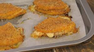 Placer les « sandwichs » de potiron sur un plat pour le four…. Saupoudrer de Parmesan et déposer qq petites noisettes de beurre.
