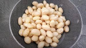 250 g de haricots blancs cocos de Paimpol cuits ( secs, les tremper la veille dans de l’eau froide pour la nuit et les cuire dans une nouvelle eau, non salée, avec un bouquet garni pour environ 45 mn).