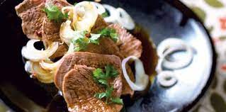 - Servir chaud coupé en tranches » aussi fines qu’une feuille de papier » et recoupées » pour n’être pas plus grandes qu’une bouchée normale » ..