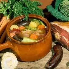 Dans une marmite ou un faitout; déposer les quartiers de chou + carotte + navet + pommes de terre + oignons + os de jambon. Couvrir d’eau largement et porter à ébullition……. Couvrir et laisser cuire 1 bonne heure à petit bouillon.