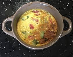 ** Dans un saladier, battre 6 oeufs en omelette + crème fraiche + muscade + sel + poivre.