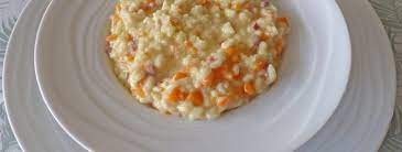 Dans une casserole, chauffer 30 g de beurre sur feu doux. Y faire revenir 5 mn carotte + oignon + céleri + sauge + poulet + jambon ………… Ajouter le riz. Verser le vin blanc et le laisser s’évaporer entièrement en remuant souvent.