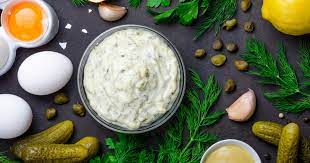 Accompagnement: sauce Tartare ( = Mayonnaise aux fines herbes + cornichons + câpres)