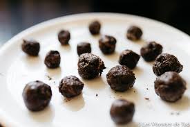 Prélever du chocolat et former des petites boules.… Les rouler dans les grains de sucre en appuyant un peu pour les faire adhérer.