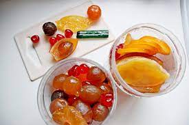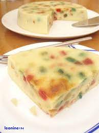 ***Dans un saladier, battre les oeufs en omelette …. + le lait …. + mini dés de fruits confits + noix hachées + biscuits émiettés …… Bien mélanger.