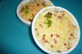 ** Entourer les moules de plusieurs petites noisettes de moules………….. Napper de Béchamel arrangée.