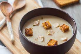 - Dans une casserole, chauffer l’huile. Y faire doucement blondir pain + oignon + persil + farine en remuant vivement 3 mn…