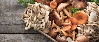 1 kg d’un mélange de champignons des bois (frais ou conserve) ou bien 1 kg d’une seule variété de champignons: cèpes, girolles, pleurotes, trompettes de la mort …. ou tout simplement des champignons de Paris