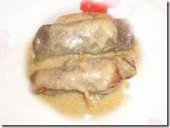 - Cuisson: – Dans une sauteuse ou cocotte, chauffer 50 f de beurre + la moitié de l »huile. Déposer les roulades côte à côte. Les napper du reste d’huile + le reste de beurre coupé en noisettes ….. Arroser de bouillon. Mettre un couvercle et laisser mijoter 45 mn.