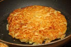 Dans une poêle sur feu doux, faire suer les échalotes ( 5 mn) ……… Ajouter les pommes de terre râpées sans les tasser. Poser un couvercle et laisser doucement cuire 10 mn……… Enlever le couvercle et, sur feu moyen, poursuivre la cuisson 5 mn: une croûte doit s’être formée côté sur la poêle……. Faire glisser la galette sur une assiette. Poser une autre assiette dessus et retourner d’un coup sec …… Glisser à nouveau la galette dans la poêle, côté croûte dorée au-dessus…….. Mettre un couvercle et, sur feu doux, poursuivre la cuisson 10 à 15 mn.