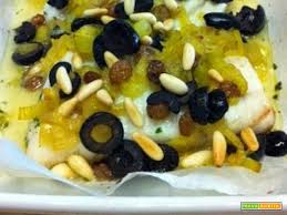 - Dans un plat creux de service, disposer 1 couche de filets de poissons .……….. Couvrir d’1 c à s oignons & vinaigre ….……… Parsemer de pignons + raisins égouttés ……………. et recommencer en remplissant le plat avec les mêmes couches: poisson/oignons/pignons & raisins ….. etc … jusqu’à épuisement des ingrédients…….. Verser le reste de vinaigre qui doit recouvrir les filets de poisson.