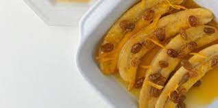 **Dans une poêle sur feu moyen, chauffer le beurre. Y faire dorer les bananes des 2 côtés en les tournant délicatement ……….. Retirer le clou de girofle à côté des raisins et verser le contenu du bol ( raisins macérés) sur les bananes…… Porter à ébullition pour faire réduire le jus (2 à 3 mn)… .