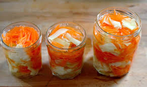 ** Dans un saladier, mélanger carottes + chou-fleur + petits oignons + chou blanc + 1 c à s de sel.
