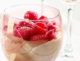 Mélanger litchis et framboises fraîches…. Les répartir dans les 4 coupes ou verres.