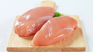 Huiler un plat pour le four… Y déposer les blancs de poulet côté peau sur le plat….. Saler, poivrer.… Enfourner 5 mn.