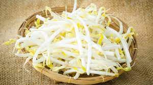- Dans une poêle ou un wok, sur feu assez vif,chauffer 1 c à s d’huile de sésame. faire revenir 5 mn les poivrons hachés…… Ajouter poireau + champignons. Faire sauter 4 mn….……….. Ajouter germes de soja + sauce soja. Mélanger 1 mn ….. Baisser à feu doux.