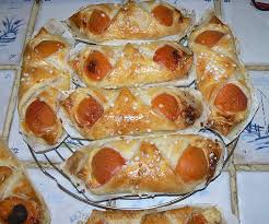 - Etaler les pâtes feuilletées devant vous. Découper des carrés d’environ 12 cm de côté. Tartiner chaque carré d’un peu de crème pâtissière ………. Déposer dessus 3 oreillons ( 1/2) d’abricots.