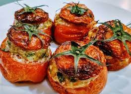 Déposer les tomates bien debout, côte à côte, dans un plat pour le four huilé au préalable.