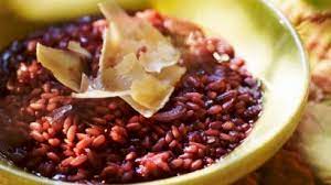 Dans une casserole, mélanger 10 cl d’eau + le vin rouge + la crème fleurette + le riz + les fruits secs + la cannelle. Porter à petit frémissement pour 20 mn environ en mélangeant de temps en temps ……