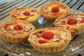 **Dans un saladier, battre les oeufs en omelette ….. + la farine …. + le fromage râpé ….. + le lait Répartir cette préparation dans les fonds de tartelettes.
