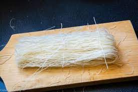 Poser le vermicelle dans un saladier. Le couvrir d’eau chaude ( du robinet ) et laisser reposer. 10 mn…. puis l’égoutter.