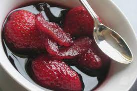 ** Filtrer l’infusion d’hibiscus chaude. Verser dans un saladier et ajouter pommes + fraises. Bien mélanger.