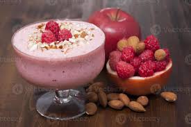 ***Dans une casserole, chauffer coulis ( purée) de framboises + eau de rose en mélangeant bien …..